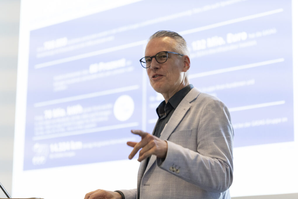 Bereits zum Auftakt machte Michael Knoll deutlich: Fortschritt erfordert Mut – und vor allem Tempo. Die Herausforderungen sind bekannt, der Handlungsdruck hoch. Umso wichtiger ist es, digitale Technologien gezielt einzusetzen, um Nachhaltigkeit wirksam zu beschleunigen.