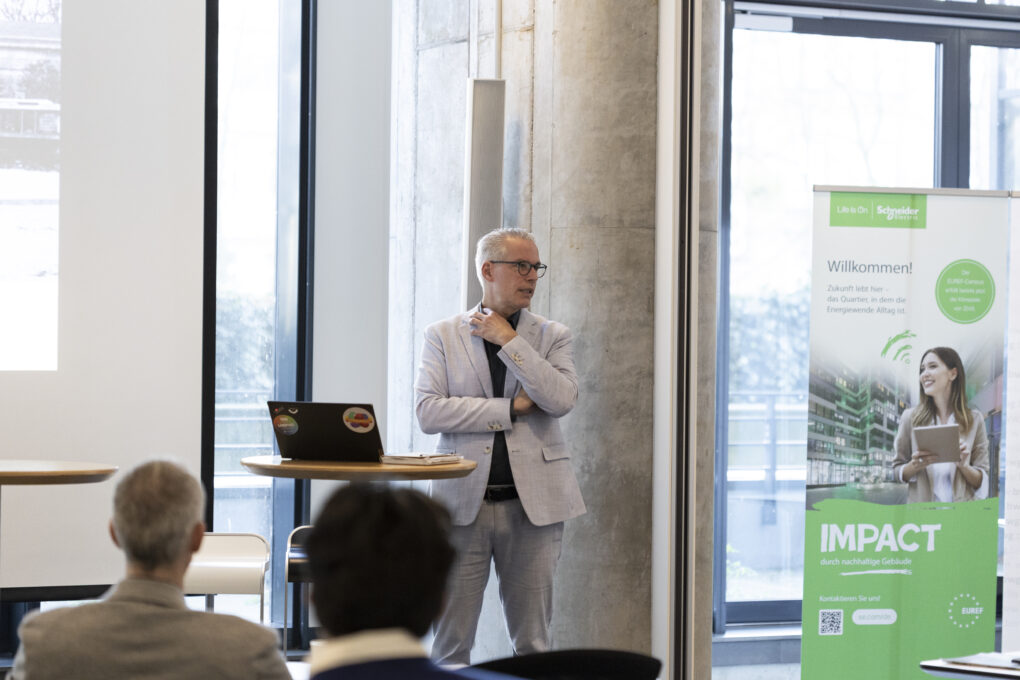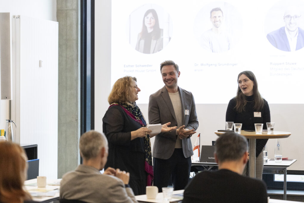 Im Mittelpunkt stand die Frage, wie Gebäude durch digitale Lösungen effizienter, transparenter und widerstandsfähiger werden können. Esther Schwedler, Dr. Wolfgang Gründinger und Pascal Biesenbach zeigten datenbasierte Steuerungsansätze ebenso auf wie organisatorische und regulatorische Herausforderungen.