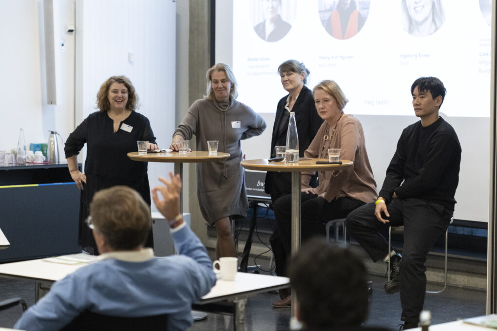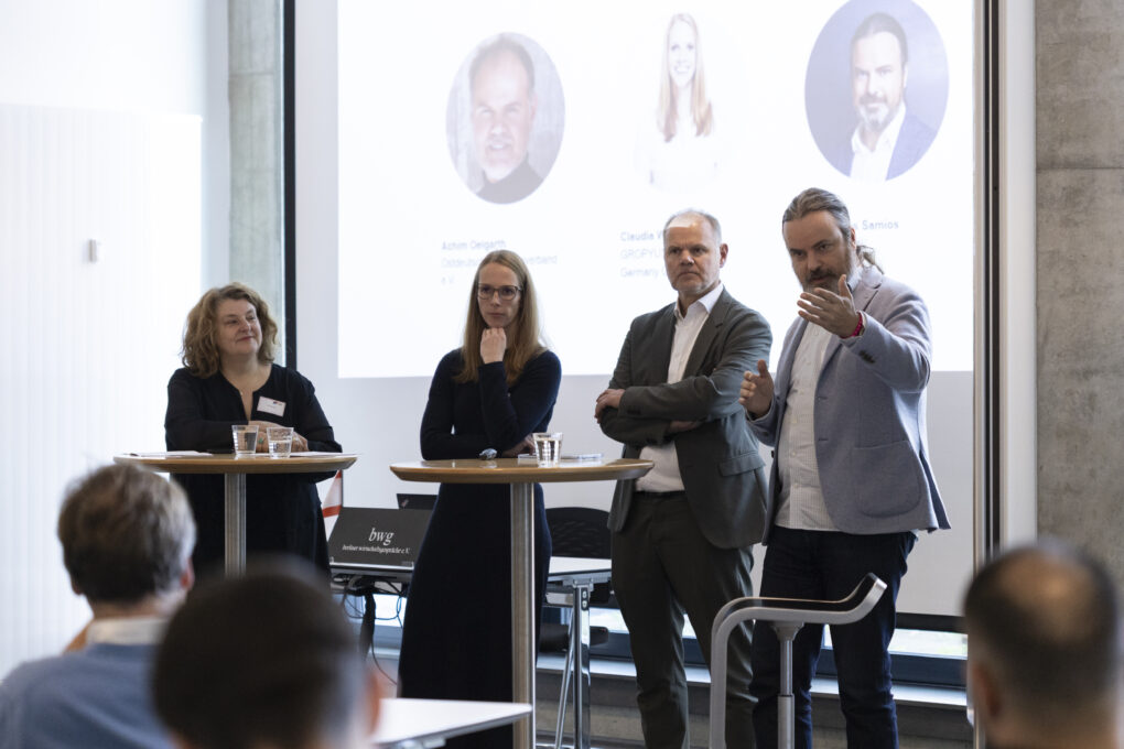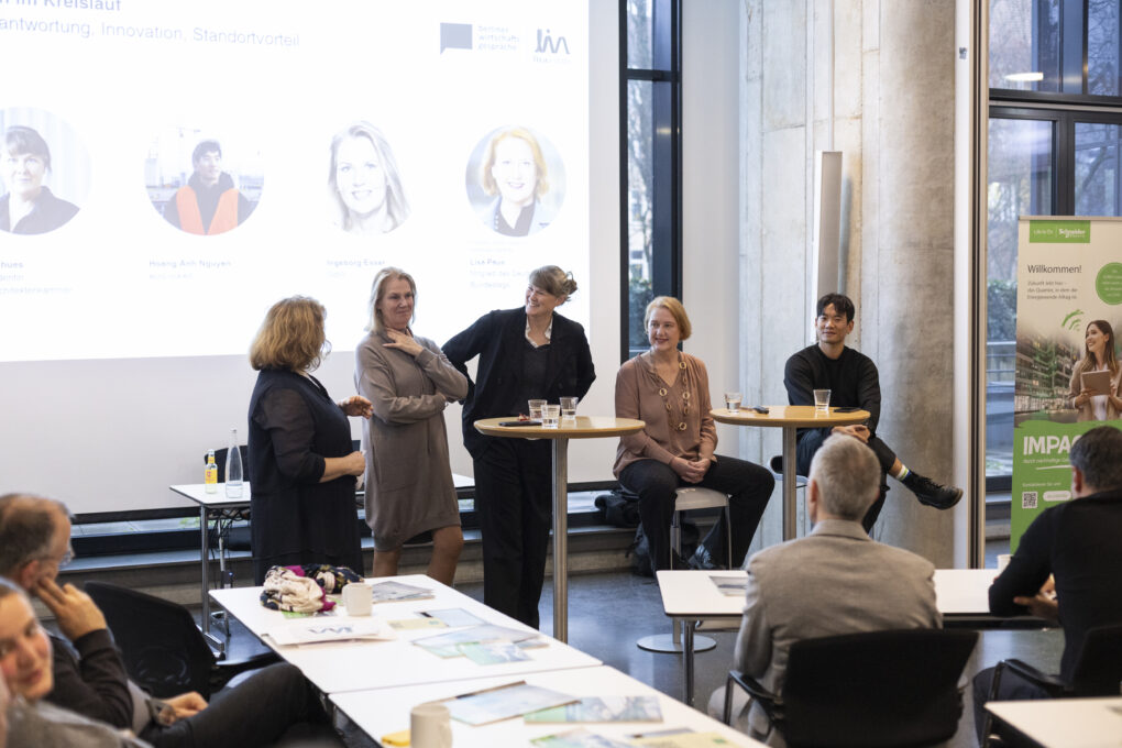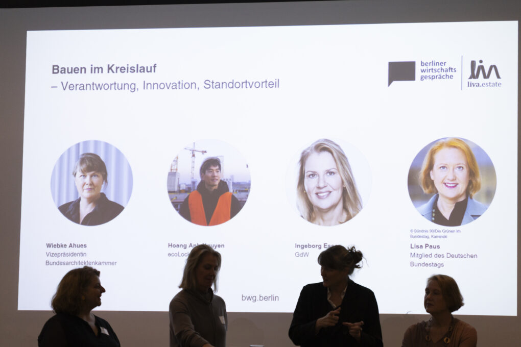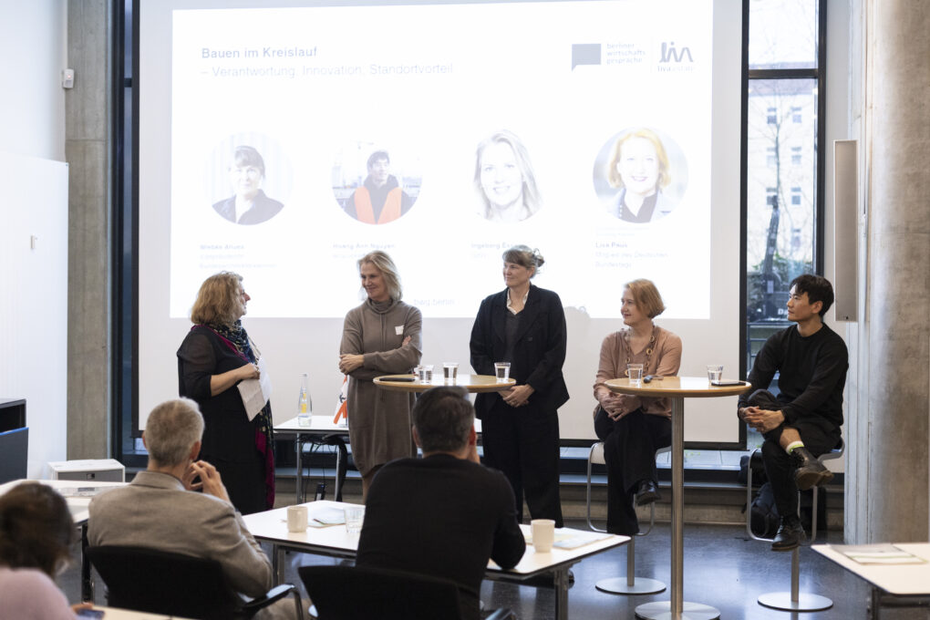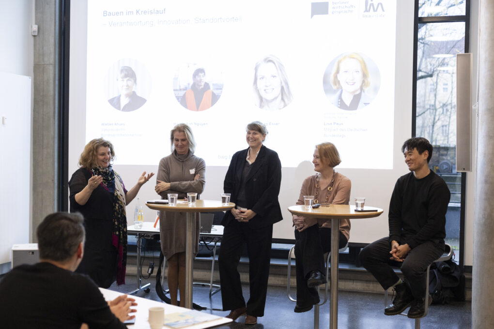 Das Circular Construction Lab widmete sich der praktischen Umsetzung von kreislauforientiertem Bauen und seiner zukünftigen Bedeutung für die Branche. Wiebke Ahues, Ingeborg Esser, Hoang Anh Nguyen und Lisa Paus diskutierten, wie zirkuläre Ansätze wirtschaftlich tragfähig und regulatorisch verankert werden können.