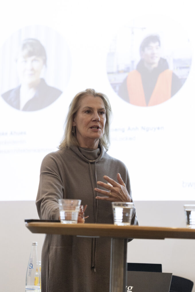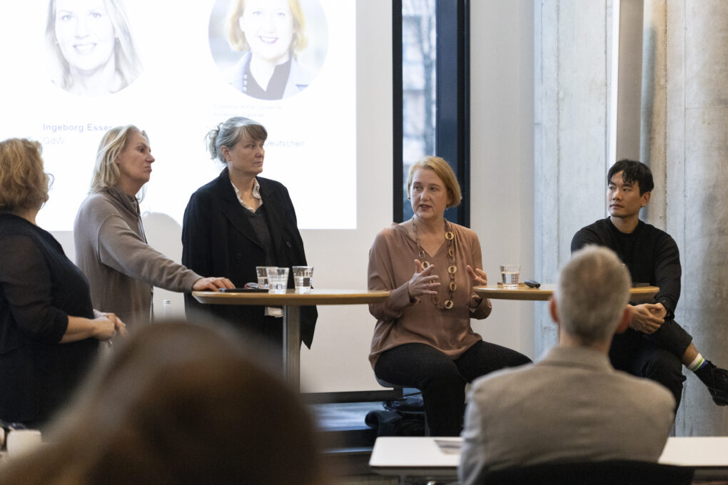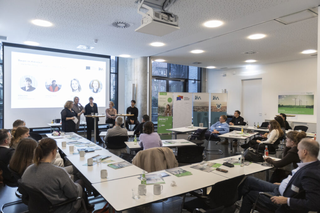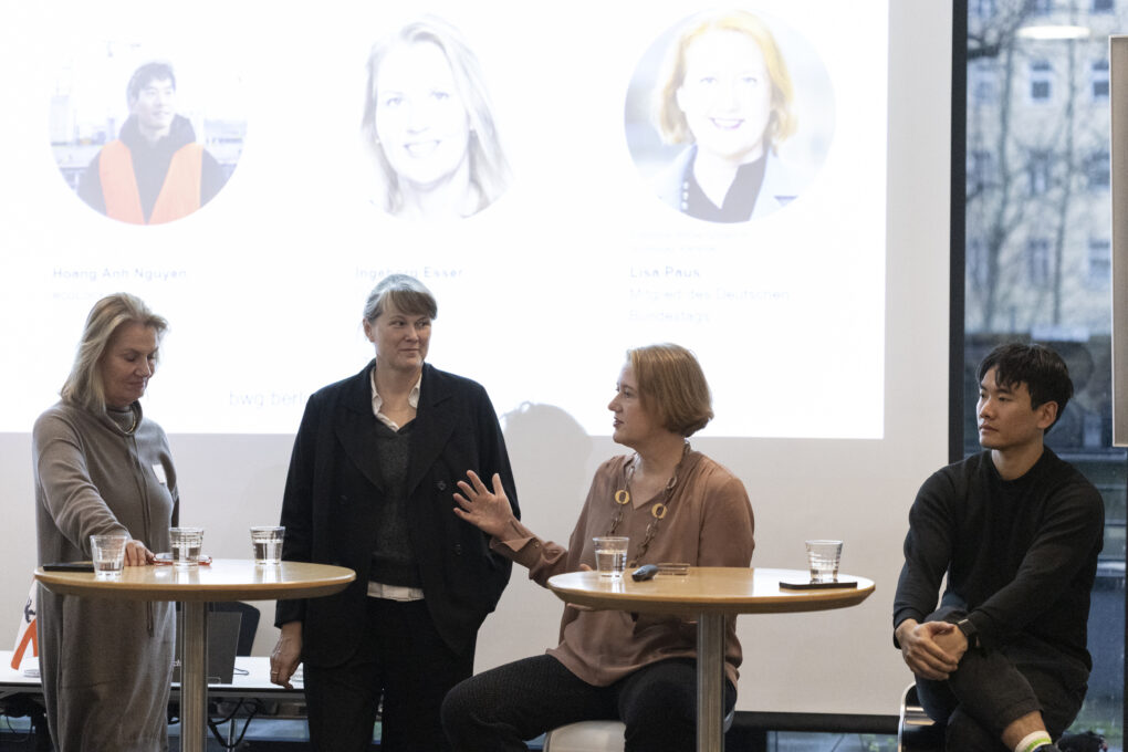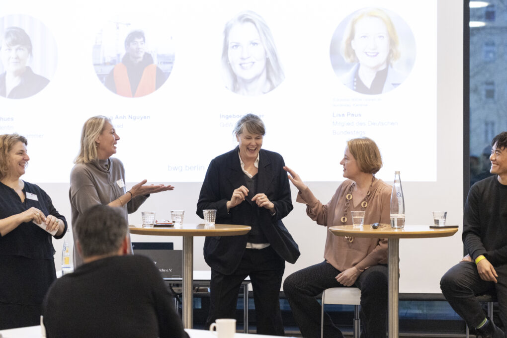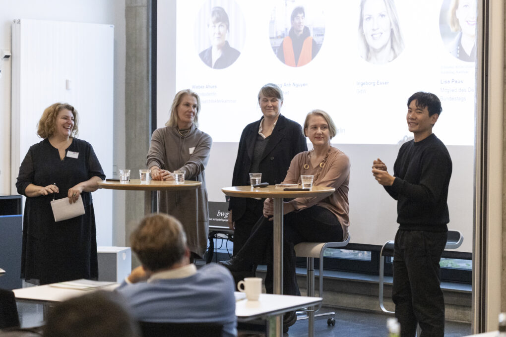 Das Circular Construction Lab widmete sich der praktischen Umsetzung von kreislauforientiertem Bauen und seiner zukünftigen Bedeutung für die Branche. Wiebke Ahues, Ingeborg Esser, Hoang Anh Nguyen und Lisa Paus diskutierten, wie zirkuläre Ansätze wirtschaftlich tragfähig und regulatorisch verankert werden können.